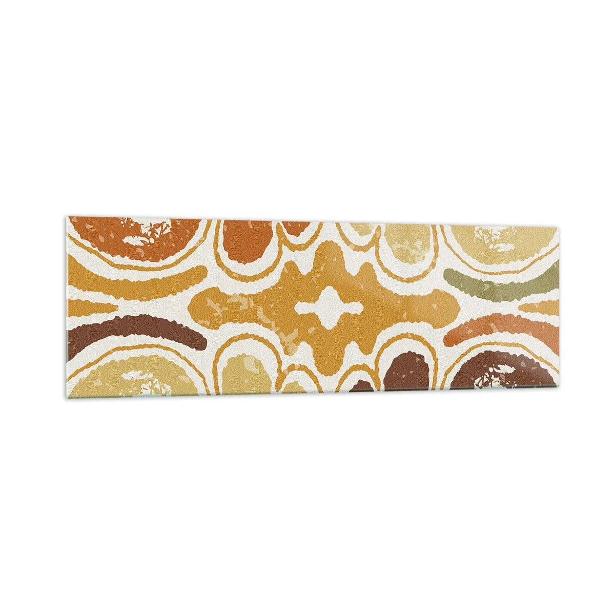 Impression sur verre - Image sur verre - Motifs abstraits chaleureux dans les tons jaunes et bruns - 160x50cm - Abstraction sentimentale - Décoration murale moderne pour le salon et la chambre ARTTOR