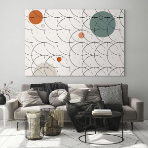 Tableau mural - Dans l'esprit du Pop Art - Cercles colorés et lignes noires sur fond clair dans le style Pop Art