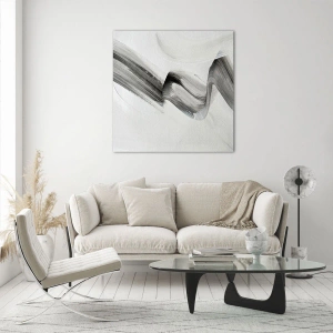 Impression sur verre - Image sur verre - Coup de pinceau abstrait gris sur fond clair - 120x80cm - Mine de rien pour s'amuser - Décoration murale moderne pour le salon et la chambre ARTTOR