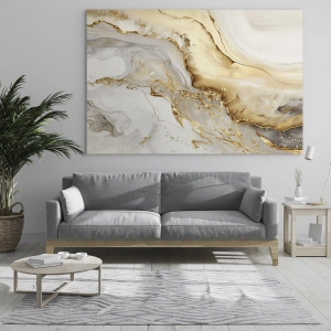 Impression sur verre - Image sur verre - Motifs abstraits dorés et marbrés sur fond clair - 140x50cm - Abstraction : beauté et bonté - Décoration murale moderne pour le salon et la chambre ARTTOR