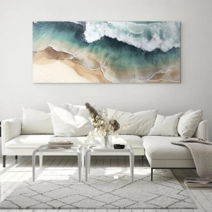 Impression sur verre - Image sur verre - Vue sur la plage et les vagues de la mer dans des tons turquoise - 70x100cm - La rencontre éternelle - Décoration murale moderne pour le salon et la chambre ARTTOR