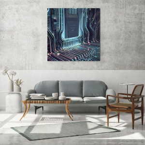 La peinture sur verre est faite sur un verre de 4 mm d'épaisseur. Les bords du verre ont une arête trapézoïdale mate. La tableau est sûr à l'utilisation et prêt à être accroché - il a des crochets en métal attachés à l'arrière du cadre et des entretoises en mousse permettant la régulation uniforme de la distance du tableau au mur.