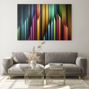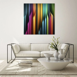 Impression sur verre - Image sur verre - Des rayures verticales multicolores rappelant la lumière et le mouvement - 50x70cm - Un organe de lumière - Décoration murale moderne pour le salon et la chambre ARTTOR