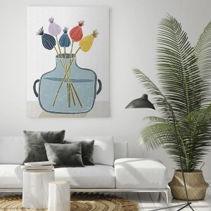Impression sur verre - Image sur verre - Têtes de coquelicots décoratives dans une cruche de style graphique - 50x70cm - Comme s'il avait semé des graines de pavot - Décoration murale moderne pour le salon et la chambre ARTTOR