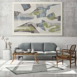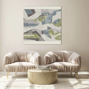 Impression sur verre - Image sur verre - Composition géométrique en vert et gris - 120x80cm - Composition derrière la vitre - Décoration murale moderne pour le salon et la chambre ARTTOR