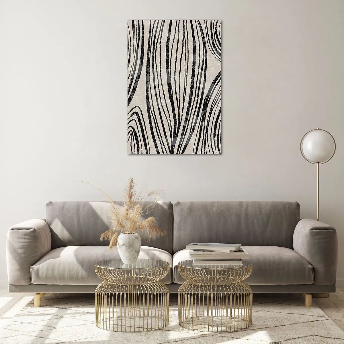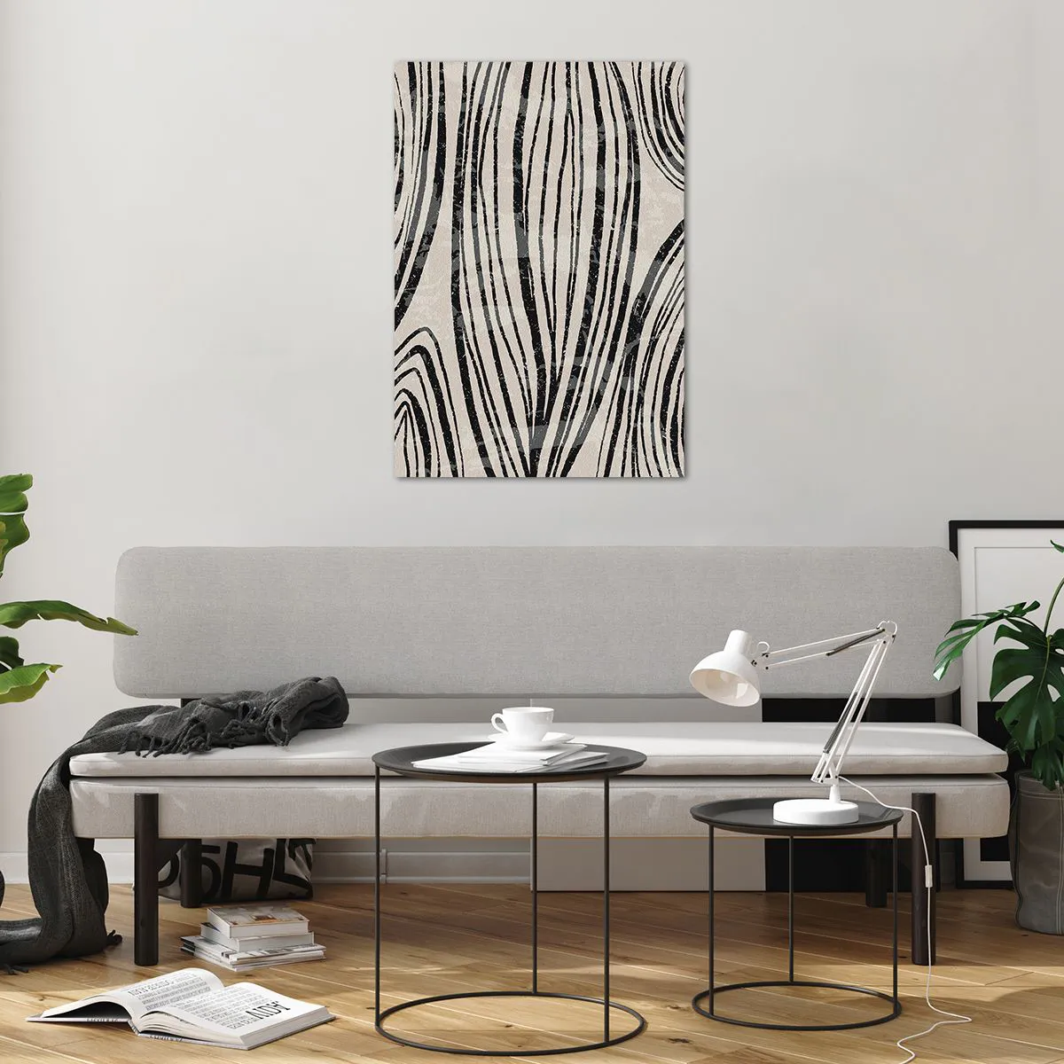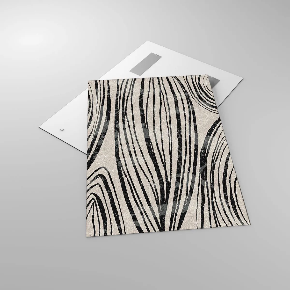 Impression sur verre - Image sur verre - Vagues abstraites dans des tons noirs et blancs - 70x100cm - Ligne de marécage - Décoration murale moderne pour le salon et la chambre ARTTOR