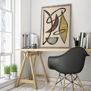 Les éléments graphiques évoquent un système de forces égales – verticales et horizontales – coexistant en tension, tout en formant un ensemble parfaitement équilibré. Leurs formes – ovales, arrondies, se heurtant les unes aux autres – créent la dynamique et l'énergie du tableau. Ce style est parfait pour les espaces modernes et minimalistes.