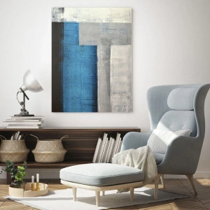 Impression sur verre - Image sur verre - Une composition abstraite avec des nuances de bleu, de gris et de blanc. - 70x100cm - Une composition poétique de gris et de bleu - Décoration murale moderne pour le salon et la chambre ARTTOR