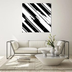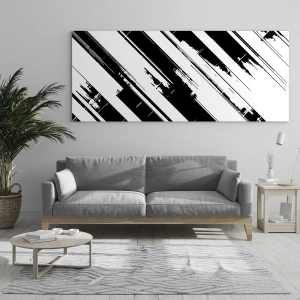 Impression sur verre - Image sur verre - Rayures dynamiques noires et blanches avec un effet vieilli - 70x50cm - Une composition intense et dynamique - Décoration murale moderne pour le salon et la chambre ARTTOR