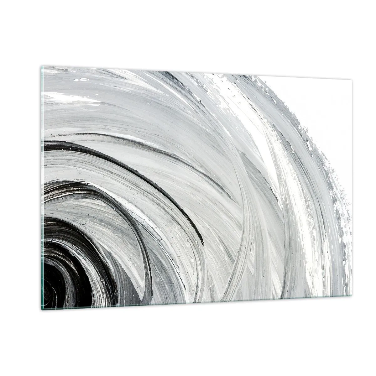 Impression sur verre - Image sur verre - Une spirale noire et blanche avec des coups de pinceau dynamiques. - 120x80cm - Composition orbitale - Décoration murale moderne pour le salon et la chambre ARTTOR