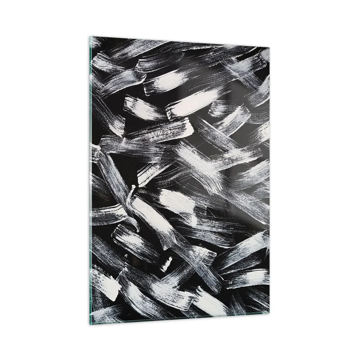 Impression sur verre - Image sur verre - Abstraction en noir et blanc de coups de pinceau sur un fond sombre - 50x70cm - L'abstraction dans l'esprit industriel - Décoration murale moderne pour le salon et la chambre ARTTOR