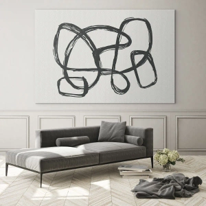 Impression sur verre - Image sur verre - Des boucles et des lignes noires forment une composition abstraite sur fond blanc. - 70x50cm - Abstraction en boucle - Décoration murale moderne pour le salon et la chambre ARTTOR