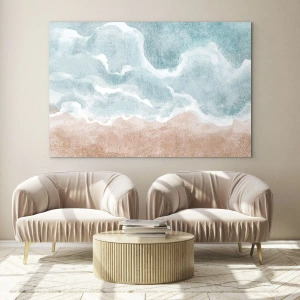 - Une abstraction délicate aux tons bleus et beiges, rappelant les vagues s'écrasant sur le rivage. Ce tableau respire la tranquillité, créant un lien subtil entre l'art et la nature. Parfait pour les intérieurs modernes.