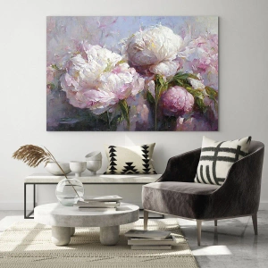 La peinture sur verre est faite sur un verre de 4 mm d'épaisseur. Les bords du verre ont une arête trapézoïdale mate. La tableau est sûr à l'utilisation et prêt à être accroché - il a des crochets en métal attachés à l'arrière du cadre et des entretoises en mousse permettant la régulation uniforme de la distance du tableau au mur.