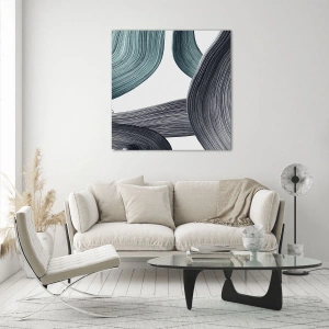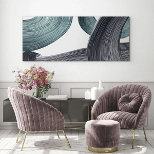 Impression sur verre - Image sur verre - Lignes abstraites fluides dans des tons de vert et de gris - 70x100cm - Sentiers émeraude et noirs - Décoration murale moderne pour le salon et la chambre ARTTOR