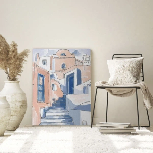 La peinture sur verre est faite sur un verre de 4 mm d'épaisseur. Les bords du verre ont une arête trapézoïdale mate. La tableau est sûr à l'utilisation et prêt à être accroché - il a des crochets en métal attachés à l'arrière du cadre et des entretoises en mousse permettant la régulation uniforme de la distance du tableau au mur.