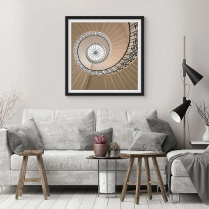 Affiche dans un cadre noir - Poster - Photographie d'un escalier en colimaçon avec une balustrade décorative - 50x70cm - À l'intérieur de la coquille - Décoration murale moderne pour le salon et la chambre ARTTOR