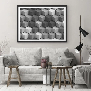 Affiche dans un cadre noir - Poster - Composition géométrique de cubes dans les tons de gris et de noir - 100x70cm - Puzzle cubiste - Décoration murale moderne pour le salon et la chambre ARTTOR