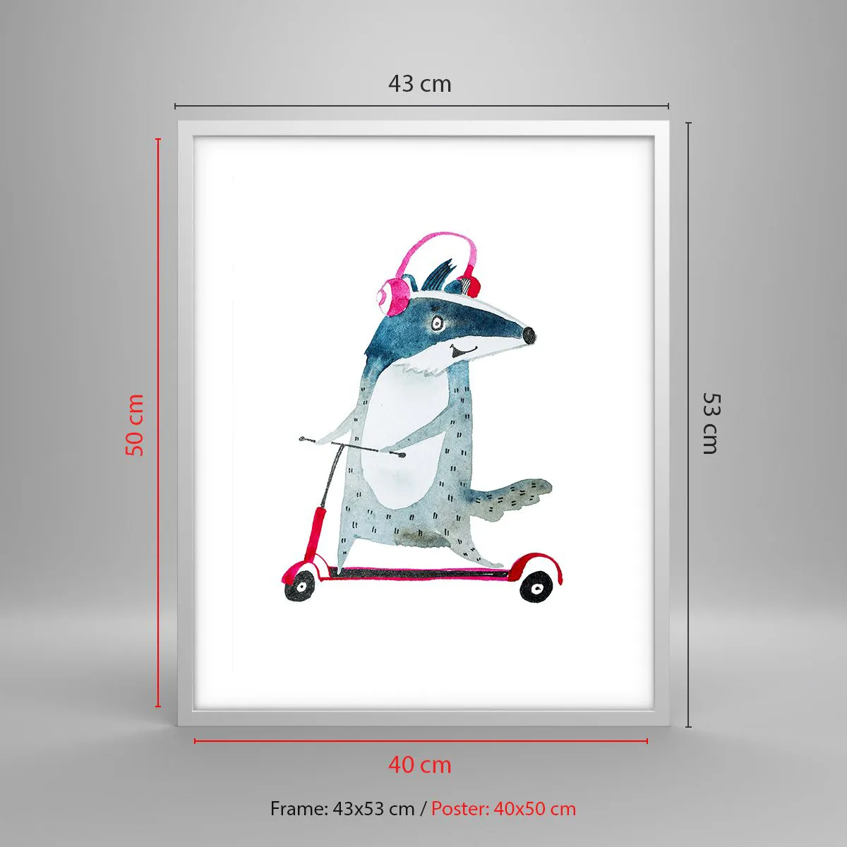 Affiche dans un cadre blanc - Poster - La joie du blaireau - 40x50 cm