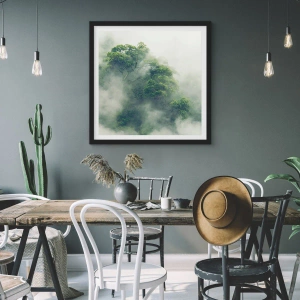 • Forêt, Brouillard, Nature, Paysages, Forêts, Nature, Pastel, Pour le bureau, Pour le bureau, Pour la salle à manger, Pour le hall, Pour le salon, Pour la chambre, Blanc, Gris, Vert, Carré