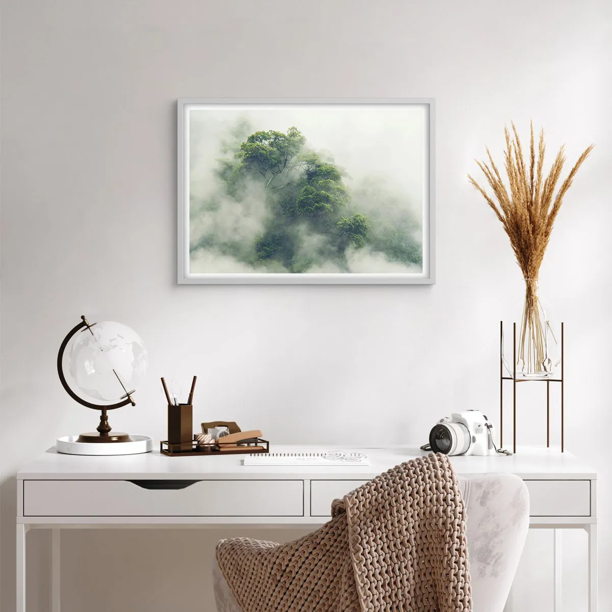 Affiche dans un cadre blanc - Poster - Enveloppé de brouillard - 70x50 cm