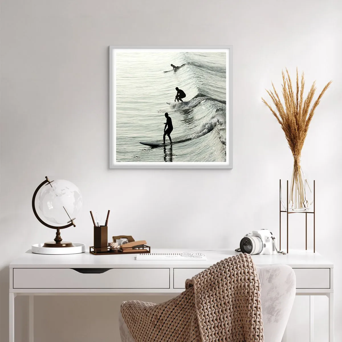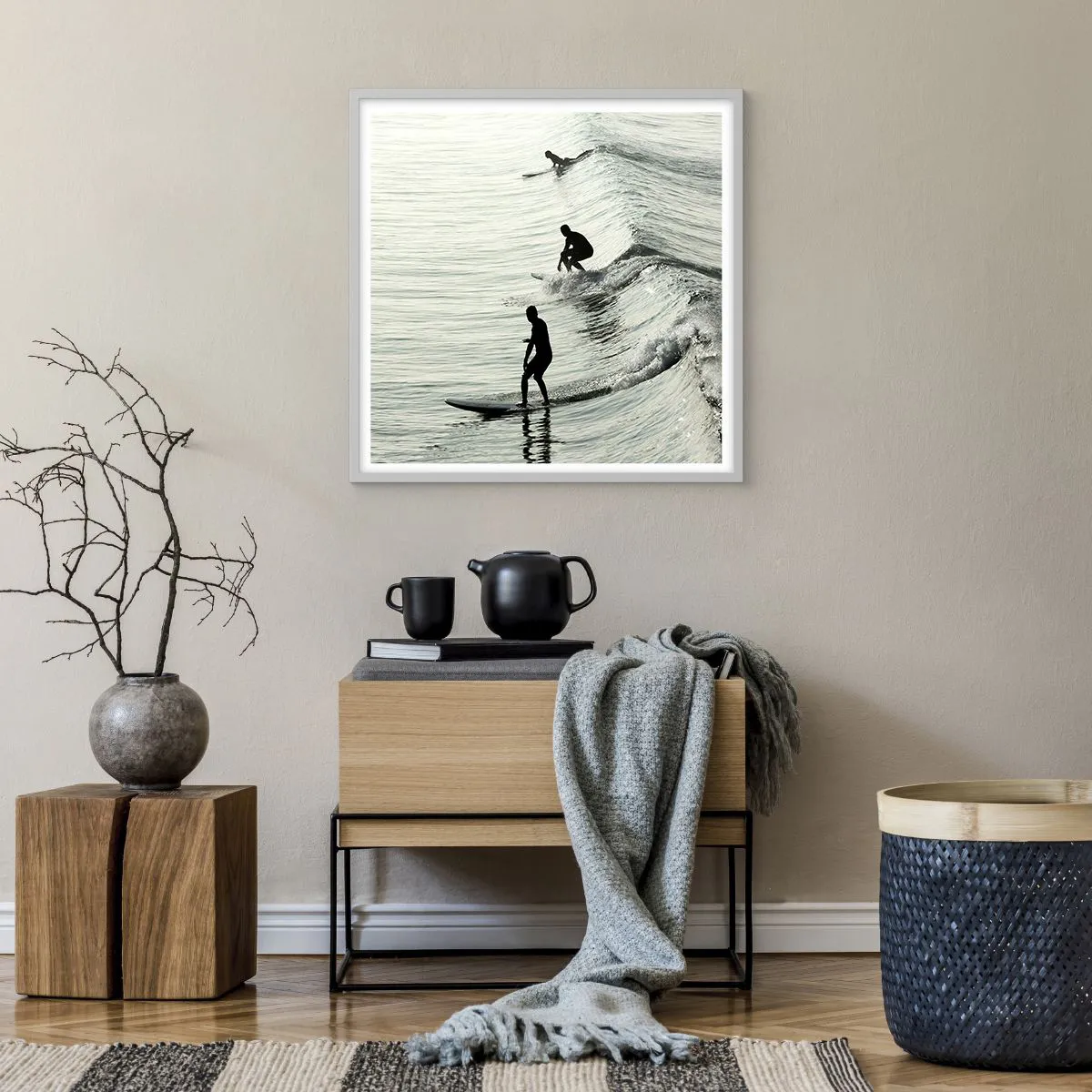 Affiche dans un cadre blanc - Poster - A la rencontre de la vague - 60x60 cm