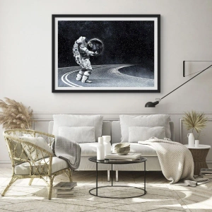 Affiche dans un cadre noir - Poster - Un astronaute dans l'espace tenant une sphère ressemblant à la Terre. - 50x70cm - Sur la Voie Lactée - Décoration murale moderne pour le salon et la chambre ARTTOR