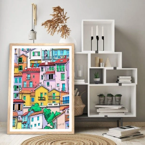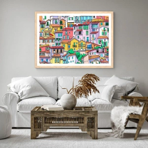 Affiche dans un chêne clair - Poster - Ville joyeuse - 40x30 cm