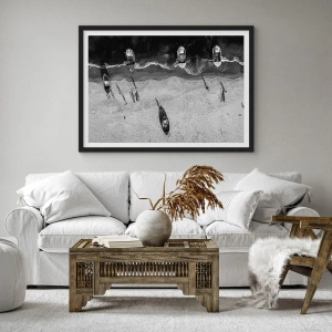 Le minimalisme de cette affiche lui confère un caractère intemporel, idéal pour les intérieurs modernes. L'esthétique noir et blanc met en valeur la structure du sable, les vagues et les détails subtils du bateau, créant une composition à la fois dynamique et apaisante.