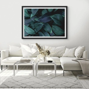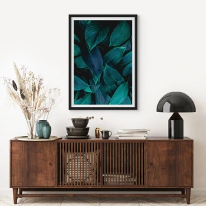 - Cette affiche présente des feuilles vert foncé subtilement rétroéclairées, créant une composition élégante et harmonieuse. Un choix idéal pour les amoureux de la nature et du design moderne.