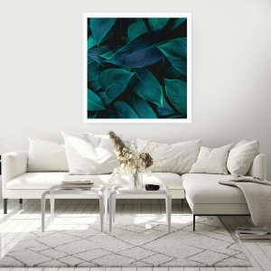 Affiche - Poster - Feuilles vert foncé avec un rétroéclairage subtil - 50x70cm - le vert lui-même - Décoration murale moderne pour le salon et la chambre ARTTOR