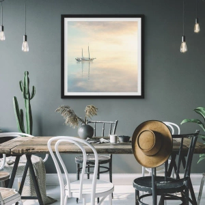 « Dans une mer de silence » est une affiche qui capture un moment de paix et d'harmonie. Elle représente un navire sur une mer calme, dont le reflet crée une image délicate, presque surréaliste. Cette composition apporte une atmosphère de détente et de tranquillité à l'intérieur.