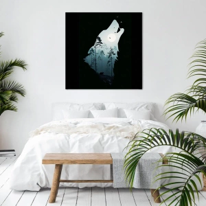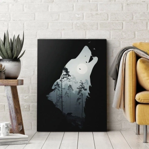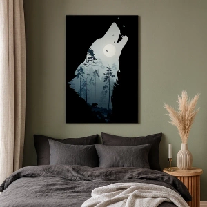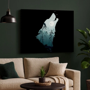 Impression sur toile - Image sur toile - Silhouette d'un loup avec une forêt et la lune en arrière-plan - 100x70cm - La voix de nuit de la forêt - Décoration murale moderne pour le salon et la chambre ARTTOR