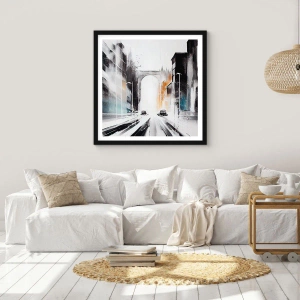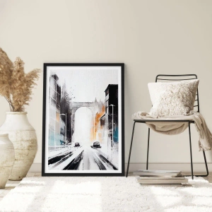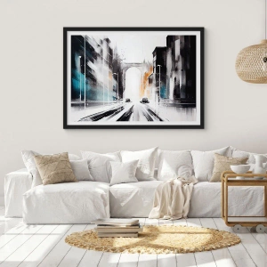Affiche dans un cadre noir - Poster - Panorama urbain abstrait avec une arche monumentale - 50x70cm - Étude de ville : architecture et mouvement - Décoration murale moderne pour le salon et la chambre ARTTOR