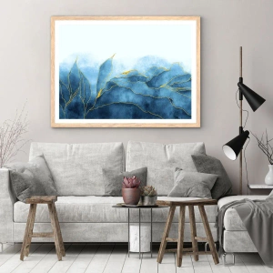 Affiche dans un chêne clair - Poster - Bleu doré - 50x70 cm