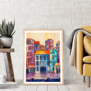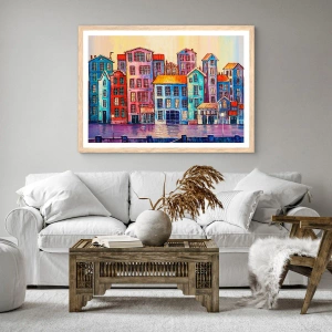 Affiche dans un chêne clair - Poster - Une ville comme dans un conte de fées - 60x60 cm