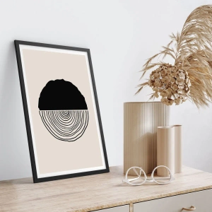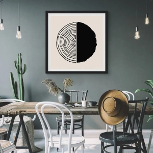 Affiche dans un cadre noir - Poster - Un motif abstrait en noir et blanc inspiré d'une coupe transversale de bois avec une division géométrique. - 70x50cm - Moitié-moitié - Décoration murale moderne pour le salon et la chambre ARTTOR