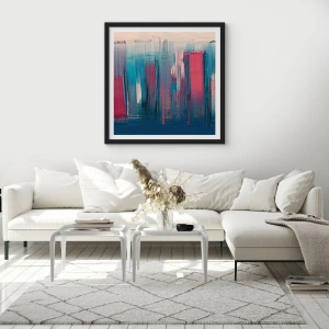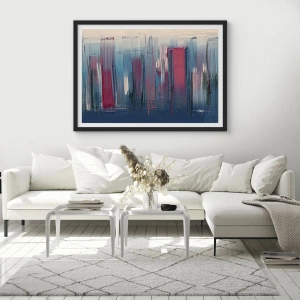 Affiche dans un cadre noir - Poster - Composition abstraite dans les tons de bleu et de rouge - 50x70cm - Composition verticale en bleu et rouge - Décoration murale moderne pour le salon et la chambre ARTTOR