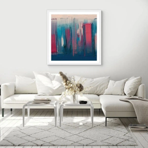 Affiche dans un cadre blanc - Poster - Composition verticale en bleu et rouge - 100x70 cm