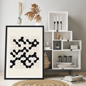 Affiche dans un cadre noir - Poster - Composition géométrique de cercles noirs et blancs - 50x70cm - Jeu chinois – variation - Décoration murale moderne pour le salon et la chambre ARTTOR