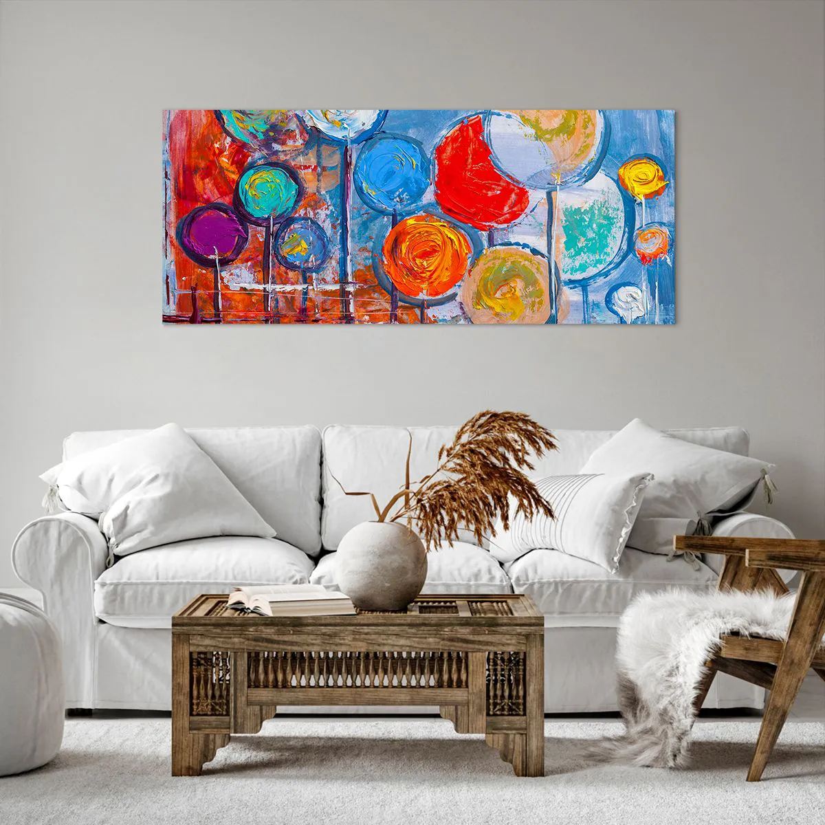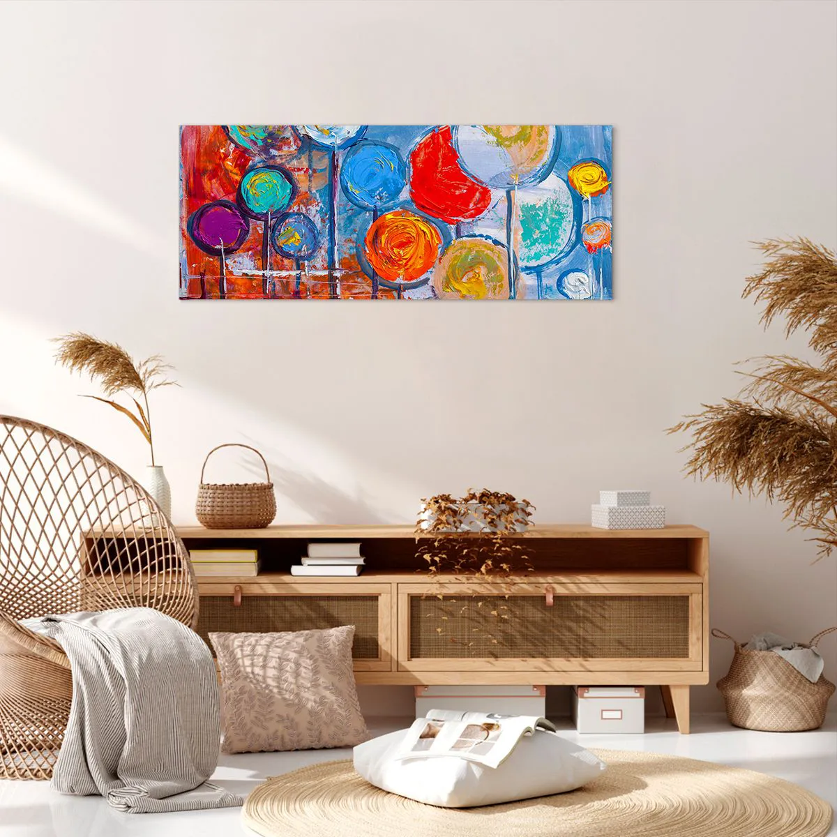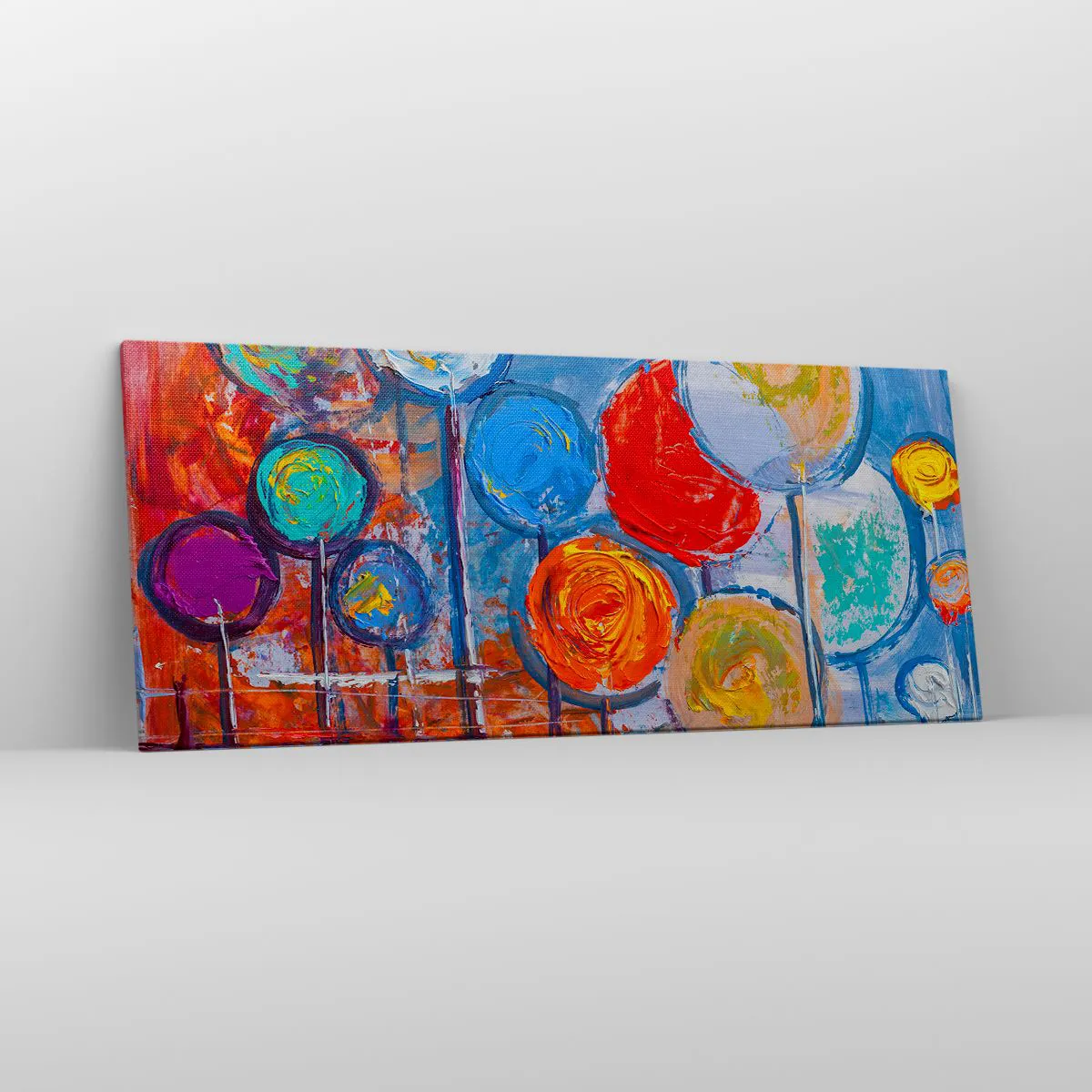 Impression sur toile - Image sur toile - Arbres abstraits colorés sur fond bleu - 120x50cm - Miracles sur le bâton - Décoration murale moderne pour le salon et la chambre ARTTOR