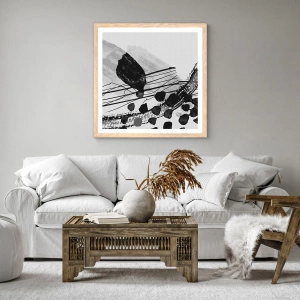 Affiche dans un chêne clair - Poster - Abstraction organique noir et blanc - 100x70 cm