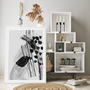 Affiche dans un cadre blanc - Poster - Abstraction organique noir et blanc - 30x30 cm