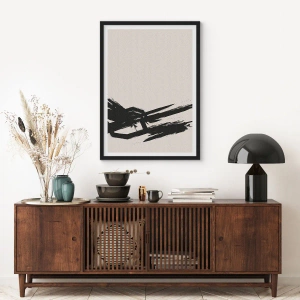 Affiche dans un cadre noir - Poster - Coups de pinceau dynamiques en noir sur fond clair - 70x50cm - Ruée imparable - Décoration murale moderne pour le salon et la chambre ARTTOR