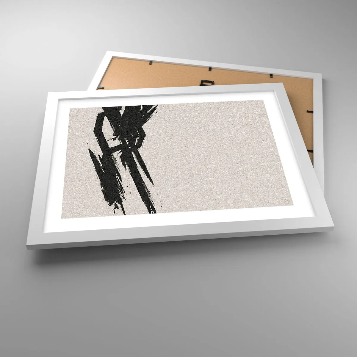 Chaque cadre est doté de deux cintres fixés au cadre afin qu'il soit prêt à être accroché au mur. Le cadre peut être accroché aussi bien verticalement qu'horizontalement