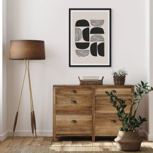Affiche dans un cadre noir - Poster - Géométrie avec demi-cercles et lignes en noir sur fond clair - 70x50cm - Offres sans enthousiasme - Décoration murale moderne pour le salon et la chambre ARTTOR
