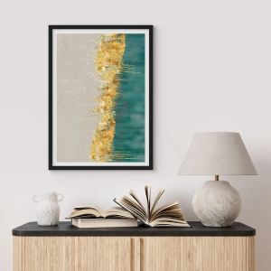 Affiche dans un cadre noir - Poster - Des accents dorés sur un fond vert-beige - 70x50cm - La frontière dorée - Décoration murale moderne pour le salon et la chambre ARTTOR