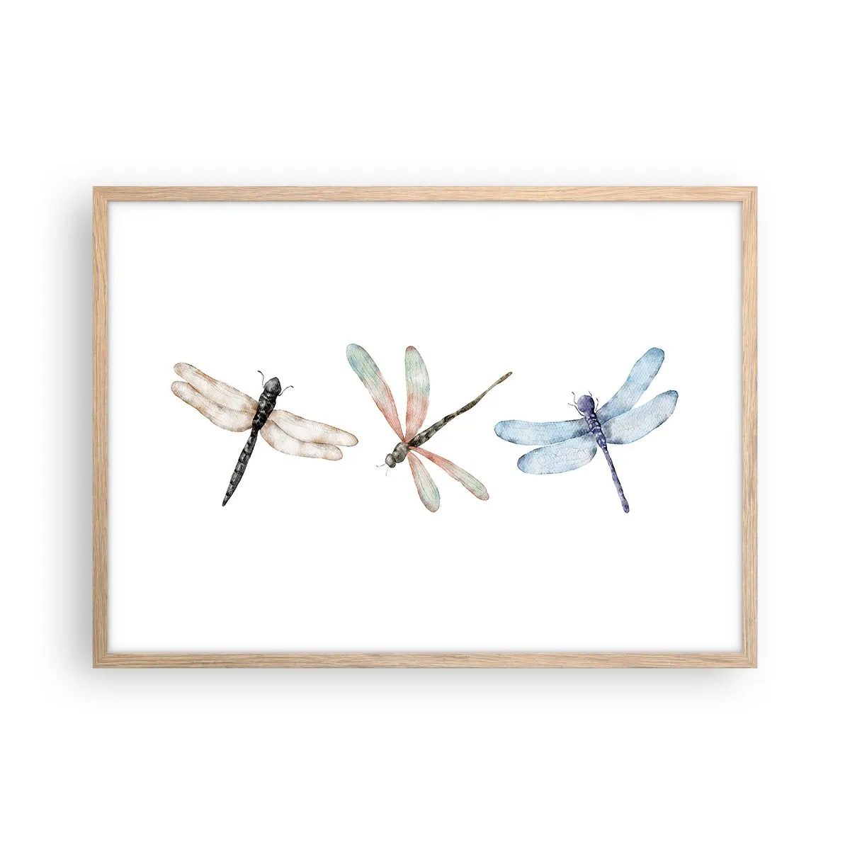 Affiche dans un chêne clair - Poster - Libellules en apesanteur - 70x50 cm
