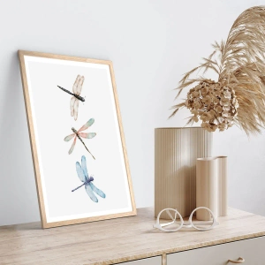 Affiche dans un chêne clair - Poster - Libellules en apesanteur - 91x61 cm