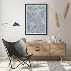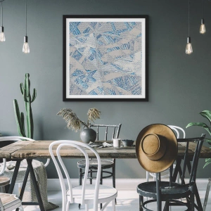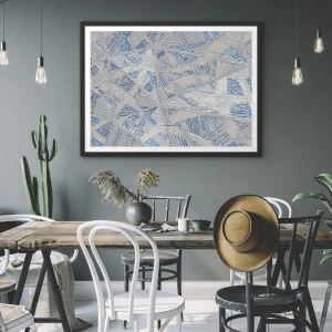 - Une affiche moderne présentant une abstraction géométrique dans des tons de bleu et de gris. L'association de textures et de formes dynamiques confère à la composition un caractère unique.